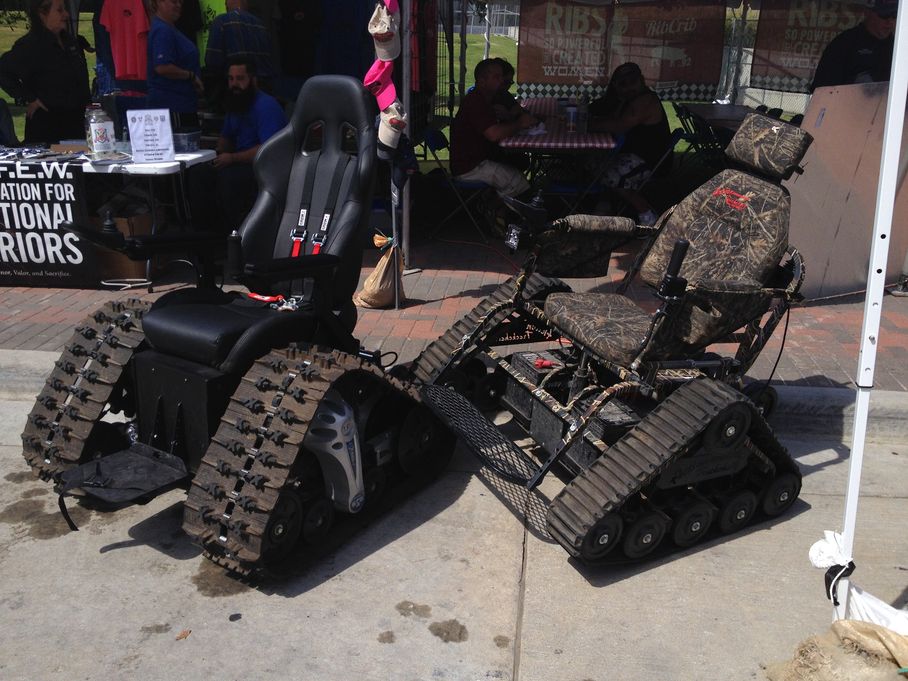 They raise money to help put them in “tank chairs,” a tracked wheel chair with a ten-inch clearance that can handle terrain and obstacles no wheelchair can surmount.